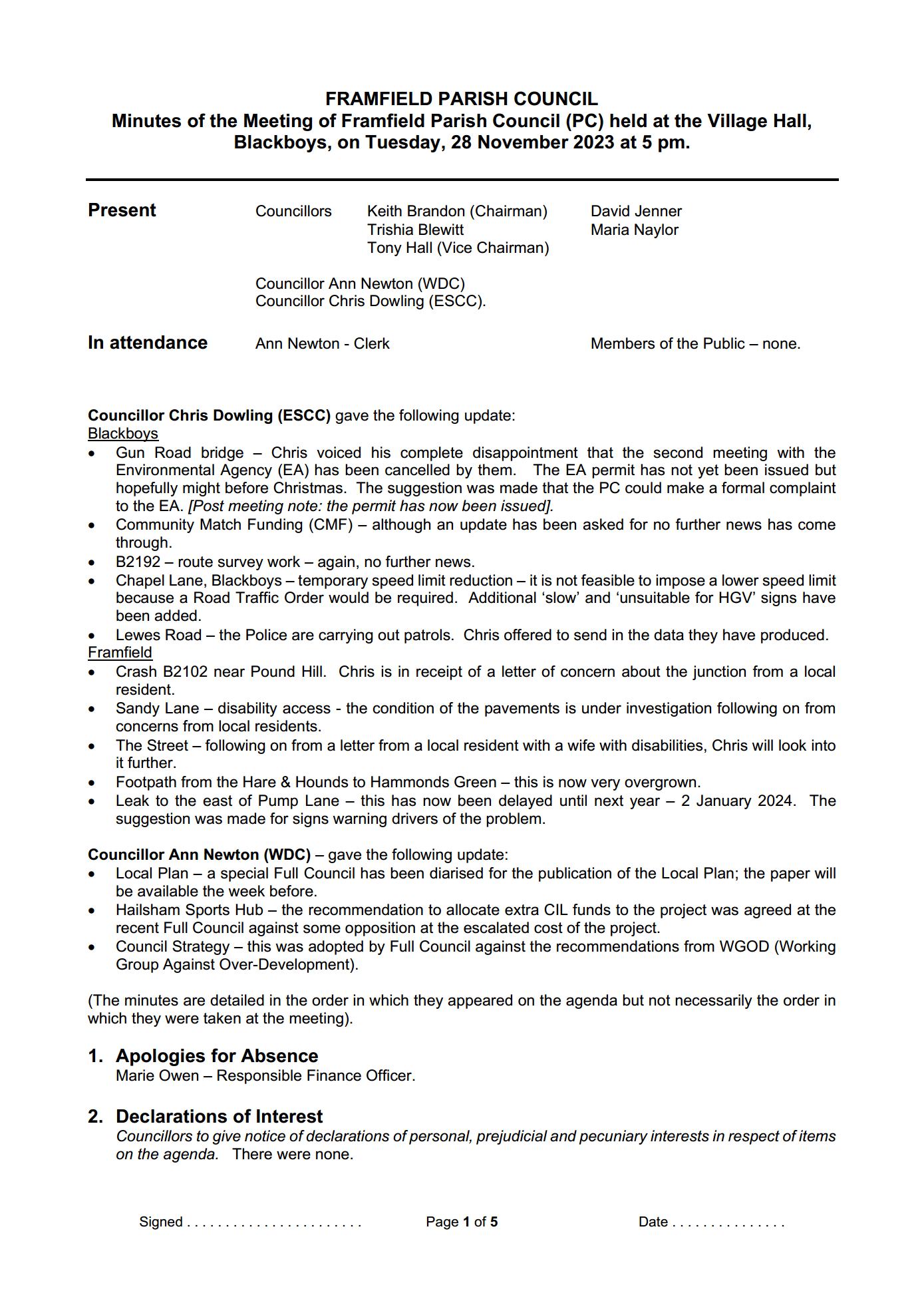 Minutes for 28 Nov 2023